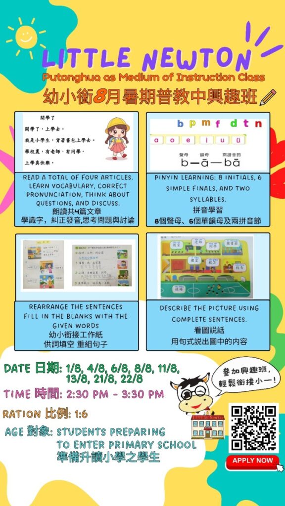 小牛頓Playgroup/Unaccompanied現已接受報名了!有興趣之家長可按以下連結,報名或查看詳情。 報名連結:https://forms.gle/VTaWUFePFRUZB5wL8
