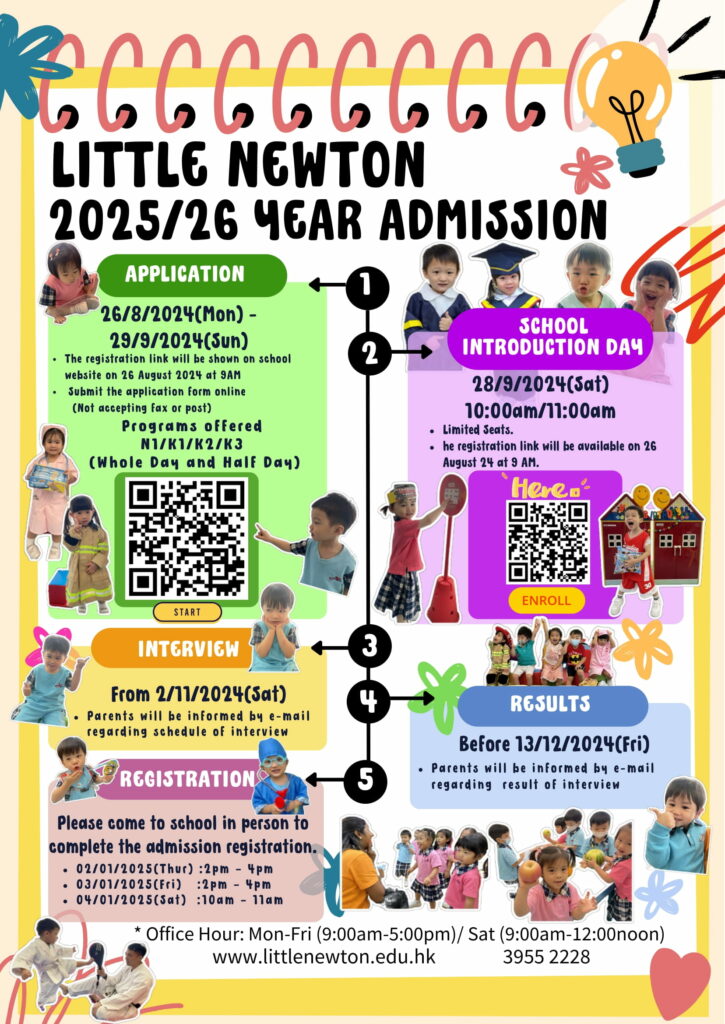 For enquiries from parents of non-Chinese speaking children, please call 3955 2228 or email to info@littlenewton.edu.hk